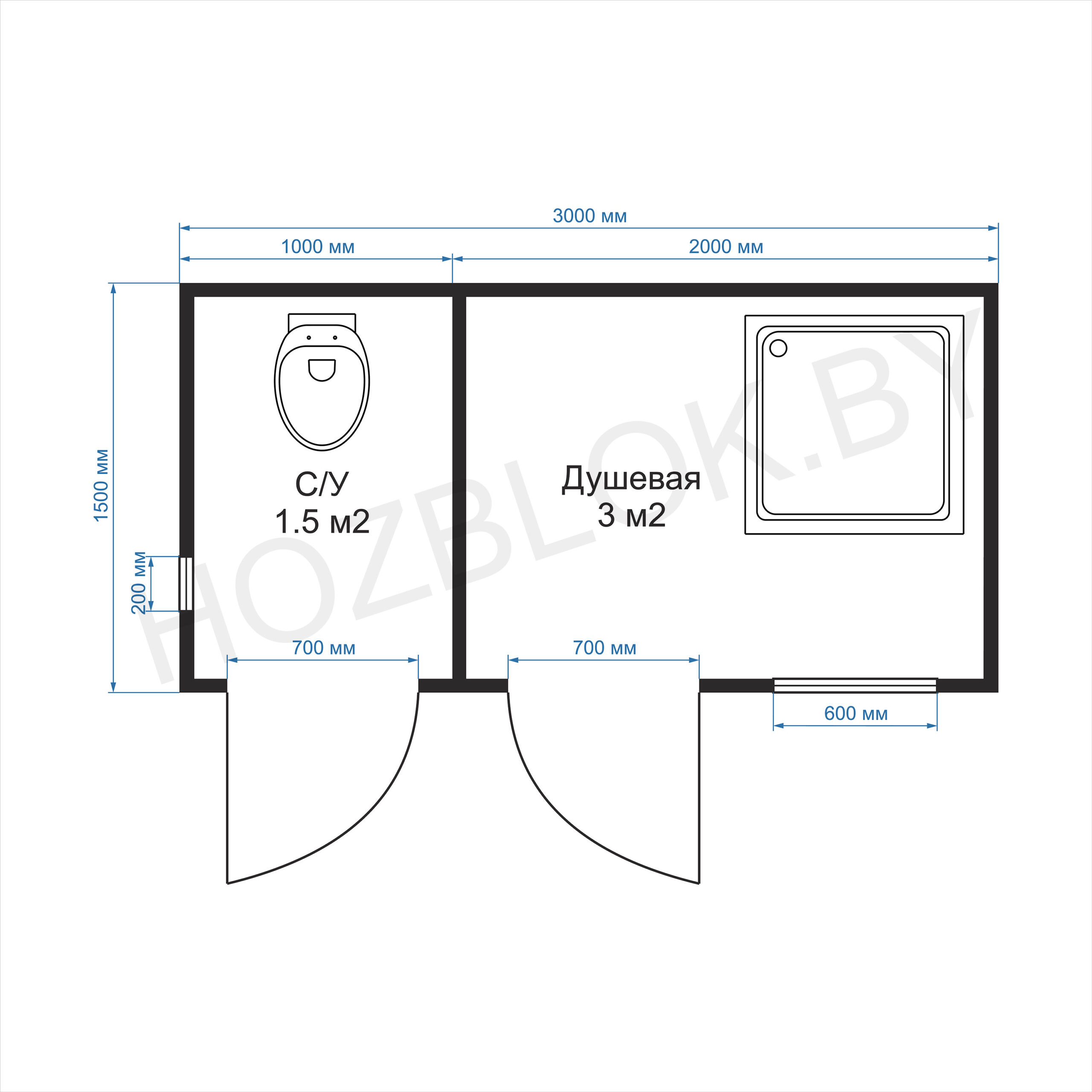 Хозблок 3х1,5 м — универсальное сооружение, которое состоит из санузла и душевой. Может использоваться для дачи, загородного дома, обеспечивая порядок и организацию пространства.